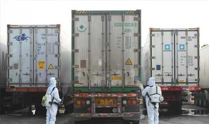 据市场相关工作人员介绍,该检测站面积1.5万平方米,分为待停区和检验区,进口水果必须携报关单、检验检疫证、核酸检测报告和消杀报告,方能进入待停区等待二次检测。在检验区工作人员会对驾驶员进行测温与核酸检测,并对集装箱进行消杀,之后再对水果内外包装、水果果皮、集装箱内壁等六个点位进行抽检,六个小时后出具检测报告。
